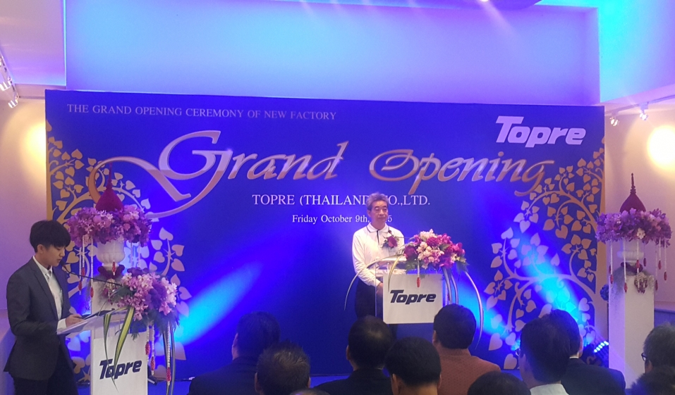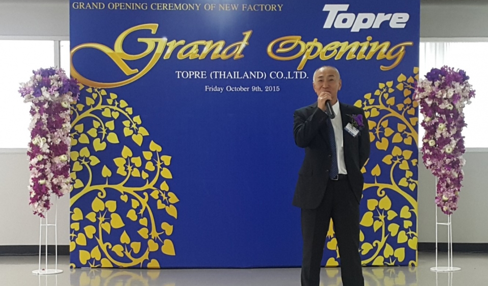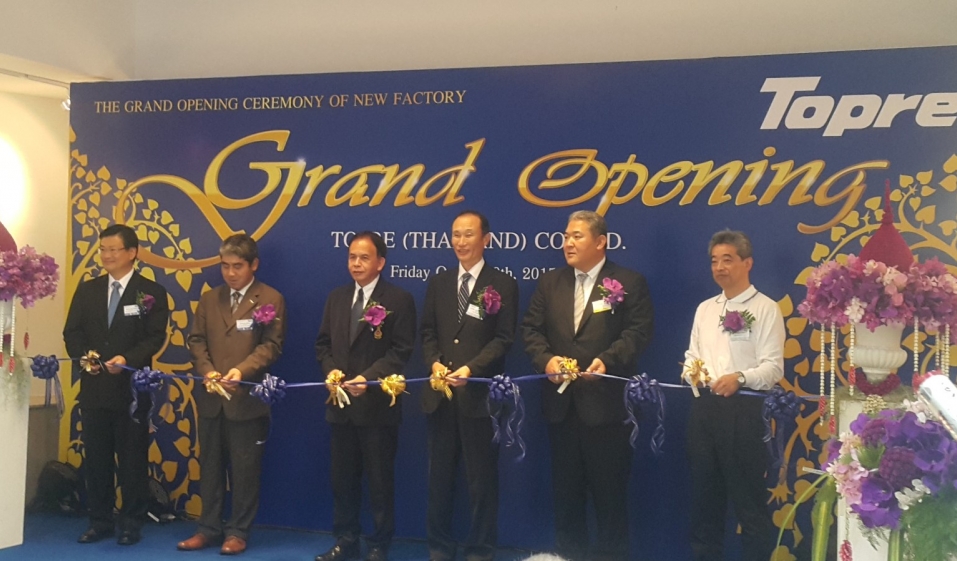 2015年10月9日に東プレタイランド社新工場(アジア工業団地スワンナプーム)開業記念式典が行われました。 東プレタイランド社は、自動車用プレス部品の製造における日本のリーディングカンパニーです。 東プレ株式会社内ケ崎真一郎代表取締役、東プレタイランド社佐々木敬代表取締役、バンボー市市長Sarayuth Kaewkulprechas 氏、労働保護福祉局局長Pramote Prasitprom氏をはじめとした、大変多くの皆様が式典に参加されました。